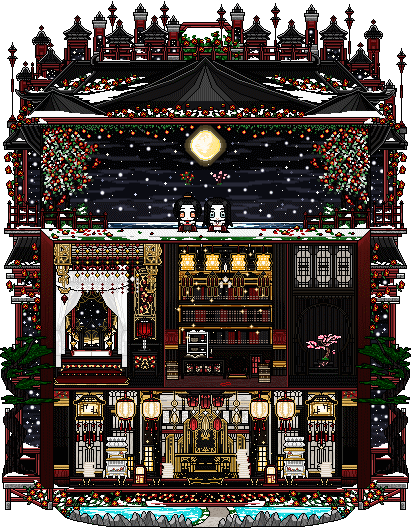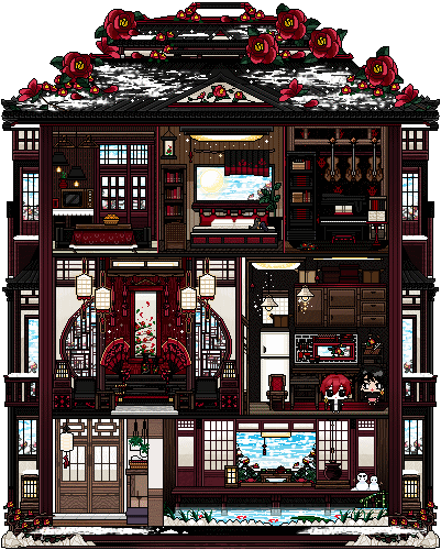 동양/중국/대저택/고풍스러운/웅장한/눈/동백